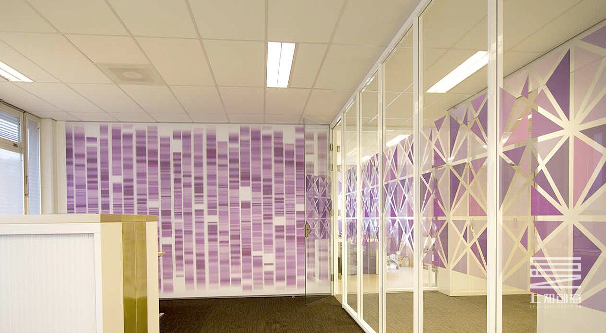 設(shè)計(jì)說明:設(shè)計(jì)師巧妙地運(yùn)用橙色與紫色為間接色,鋼絲屏風(fēng),隔而不斷,既形成區(qū)域劃分,又保持各自的工作空間不受干擾。前臺(tái)區(qū)域的鏡面隔斷,有效地拓寬了空間感,減小了空間的壓迫感。