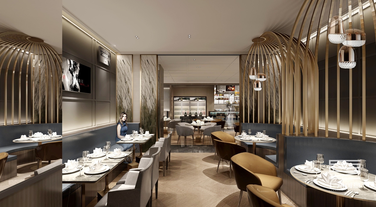 設(shè)計(jì)說明:設(shè)計(jì)手法以金屬網(wǎng)隔斷,鳥籠座椅,精致的燈具等材料綜合運(yùn)用,烘托出尊貴、典雅的文化氛圍,帶給我們的大氣沉穩(wěn),顛覆了穩(wěn)重不失時(shí)尚的感覺。統(tǒng)東方元素,柔和的燈光,現(xiàn)代的設(shè)計(jì)手法創(chuàng)造出豐富的視覺和心理感受,營造出內(nèi)斂、含蓄使人平和、沉靜的餐飲環(huán)境。
